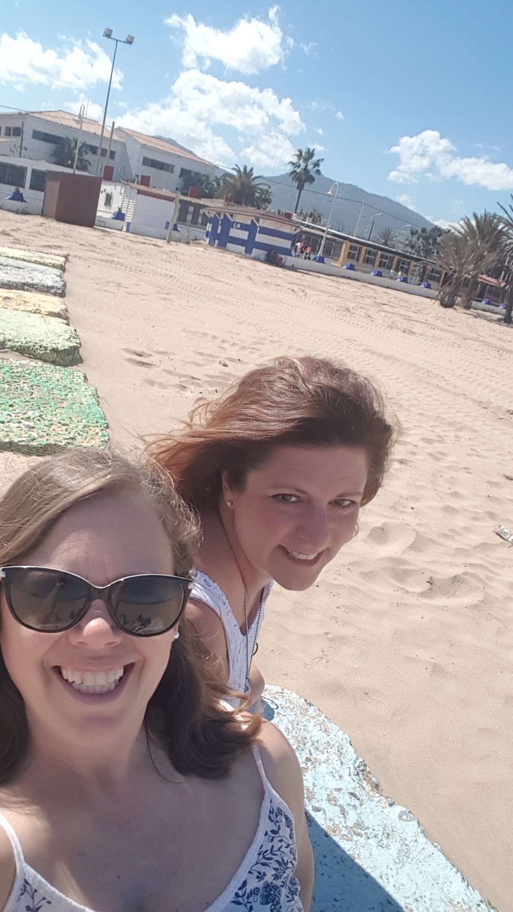 Once we crossed the border into Spain we realized we were in a military community. We took a stroll along the beach instead. It was an 80 degree day and blue skies, so these girls had to “hoof it” to the beach.
