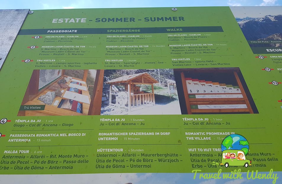 We decided to do the Roda de Pütia begin the trail HERE. Next, Look for the DOLOMITES UNESCO park sign – the signage is fantastic. I will definitely say this several times throughout the blog because it was great! I really appreciated a fluid trail.