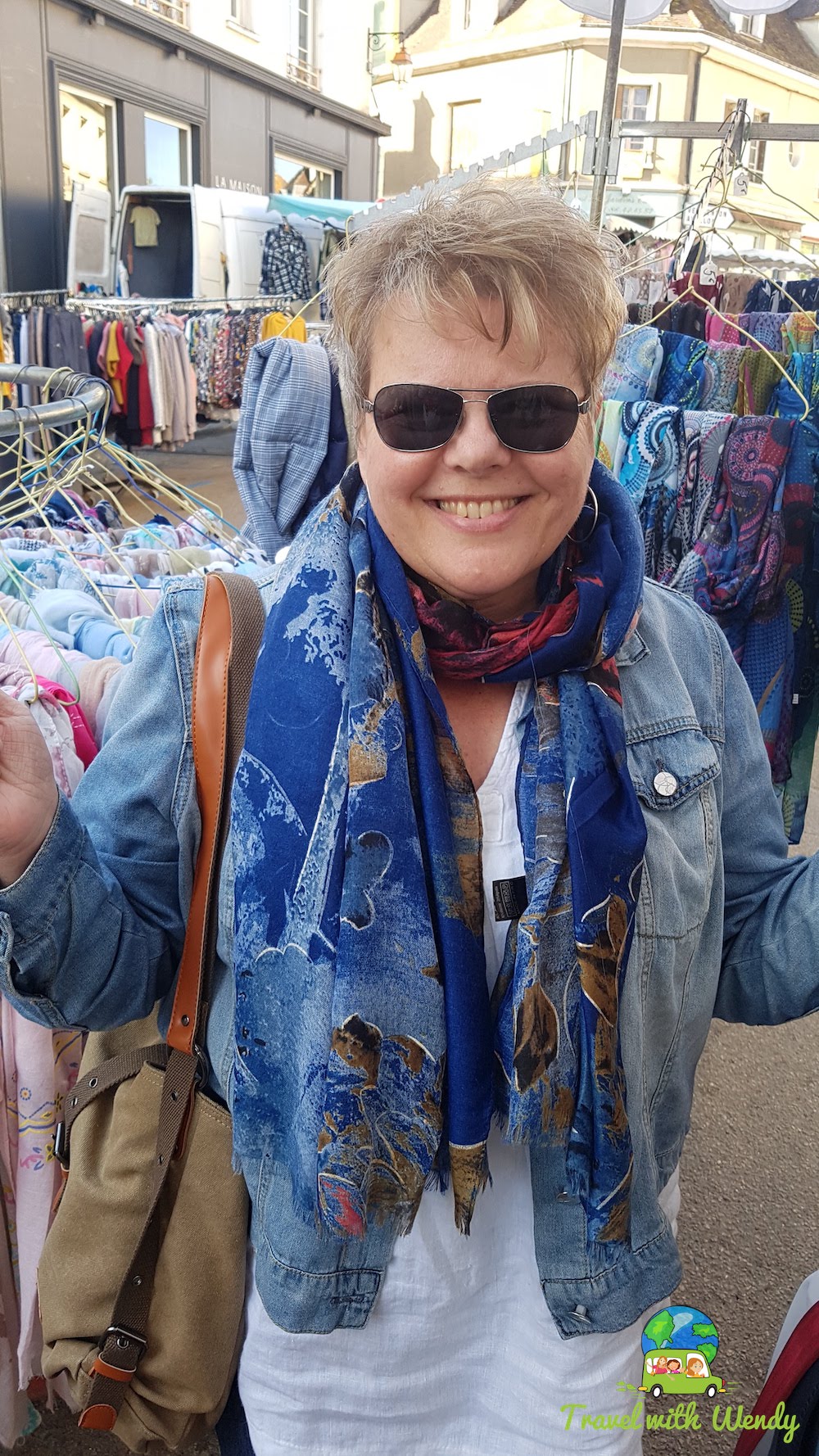 The Sunday Market in Chablis is really a lively event. I was so glad we went, I have been to probably a hundred different weekly markets around Europe. I was amazed at the variety of products you could buy here. From home goods to fresh sausage, made right in front of you. WOW! Plus of course, they had lovely loaves of bread, cheeses, scarves, and much, much more ~